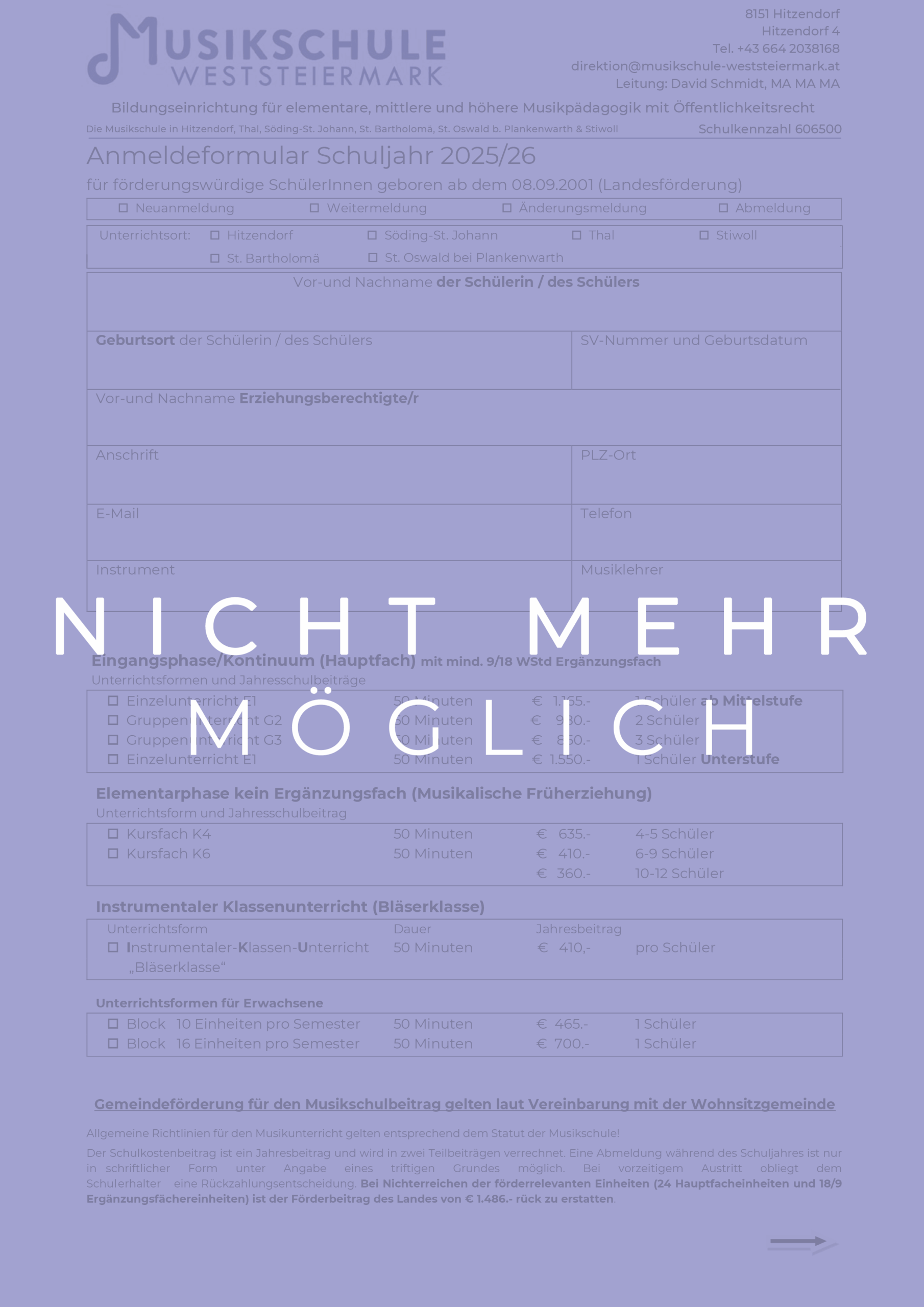 Ausnahme: Besuch einer Musikmittelschule oder eines Musikgymnasiums → dann ist Förderung auch bei Einzelstart möglich.